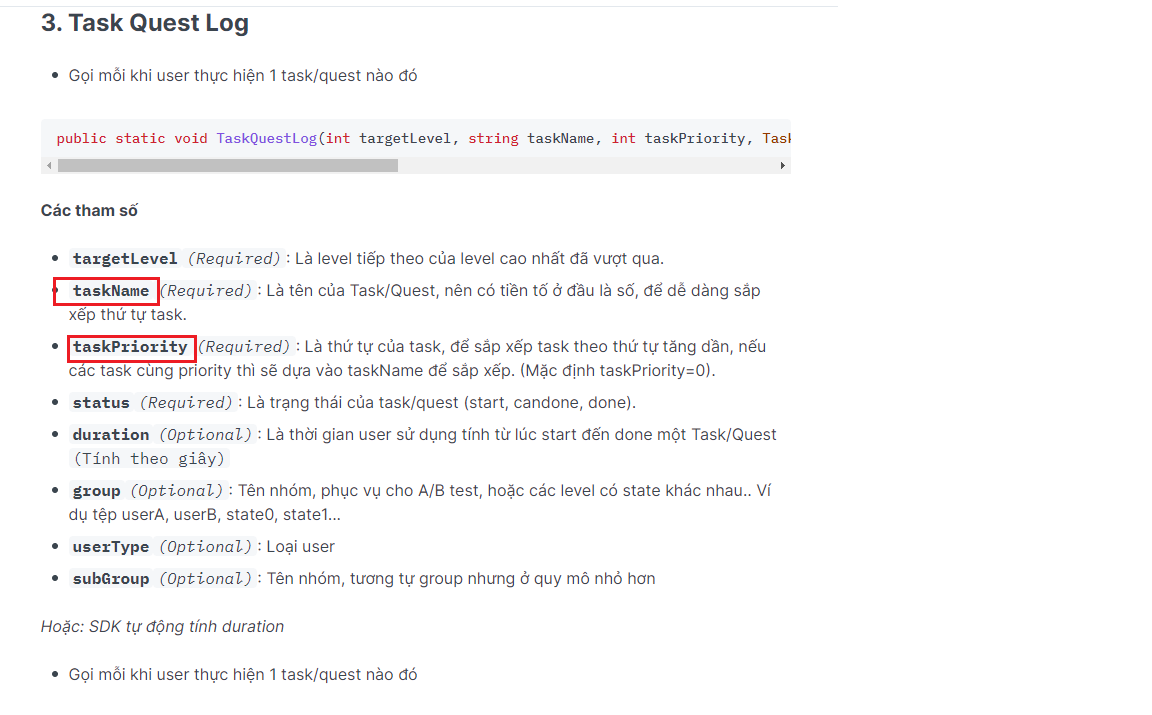 * Ở tài liệu tích hợp GSM SDK cho Task Quest Log có mô tả:
